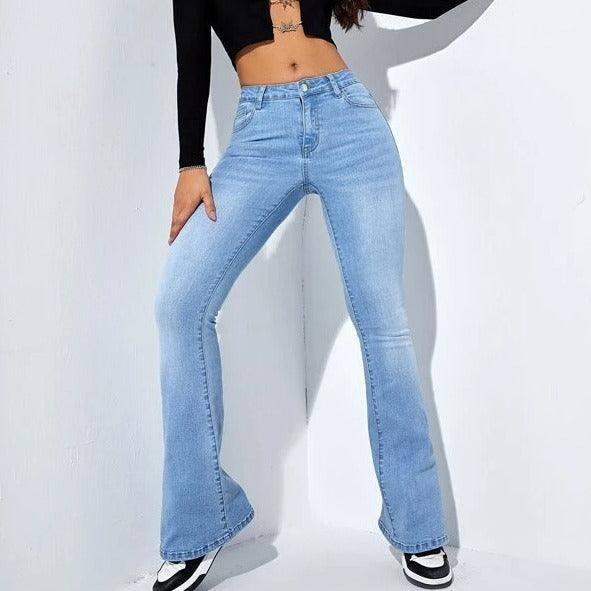 Damemote, uformelle bukser med høy midje og smal passform i stretch