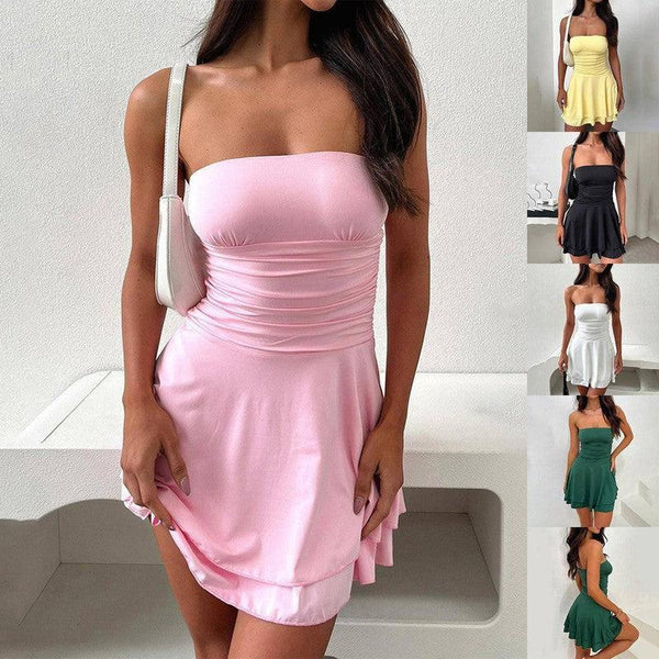 Y2K Tube-top kort kjole sommer plisserte trange kjoler